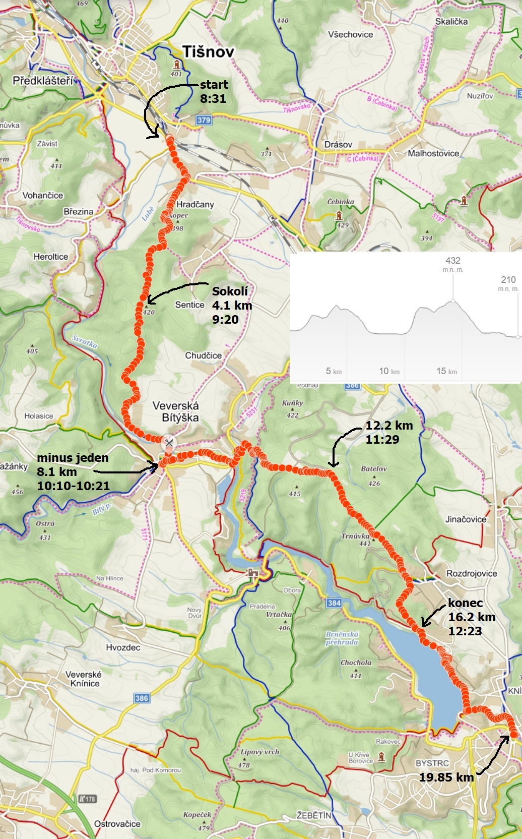 April 26th. Start at 08:31 at the train stop Hradčany (near Tišnov).