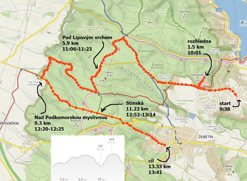 We have planned a 15 km hike through a forest to Žebětín, visiting a